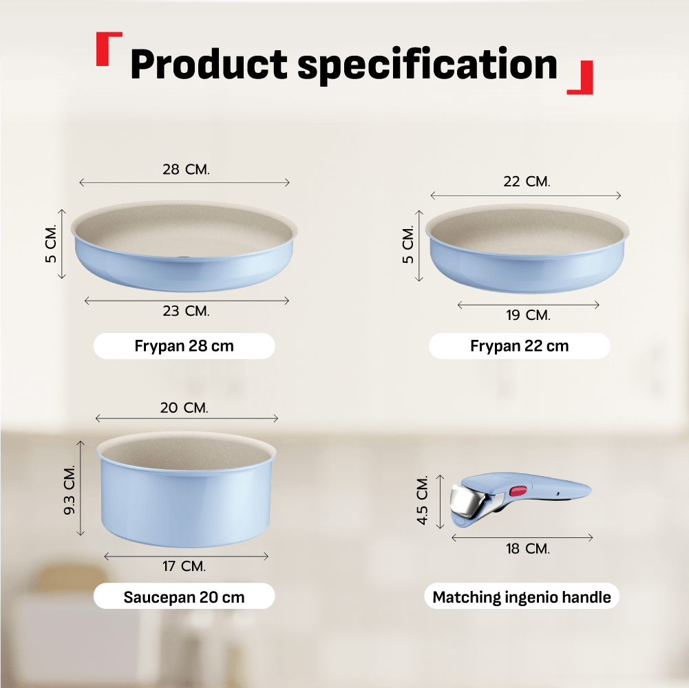 ★4 pcs set includes: 18cm saucepan, 22cm & 28cmfrypan, removable handle