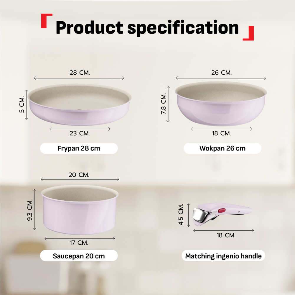 ★4 pcs set includes: 18cm saucepan, 26cm wokpan, 28cm frypan, removable handle