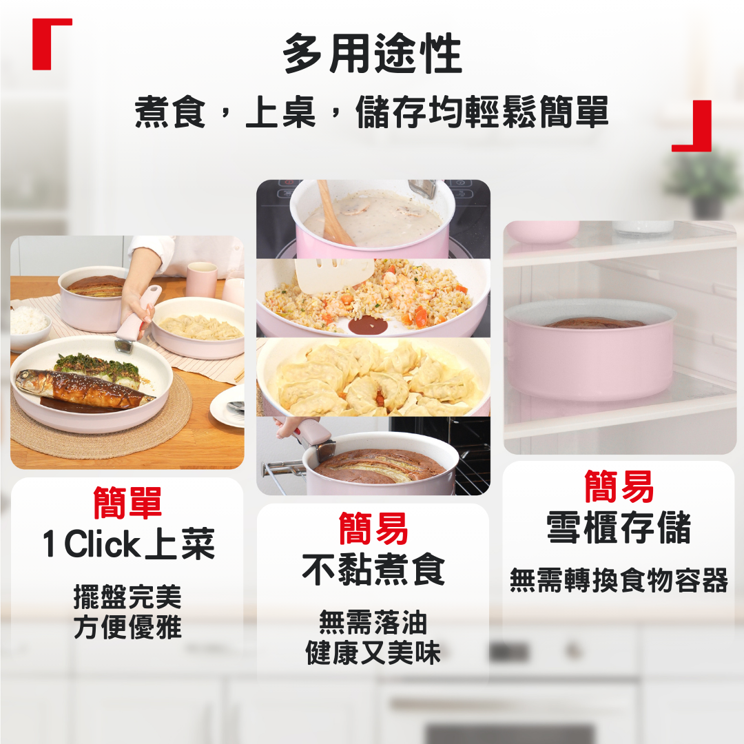 ★可於爐具、焗爐,餐桌上使用,亦可存放於雪櫃中或於洗碗碟機清洗
